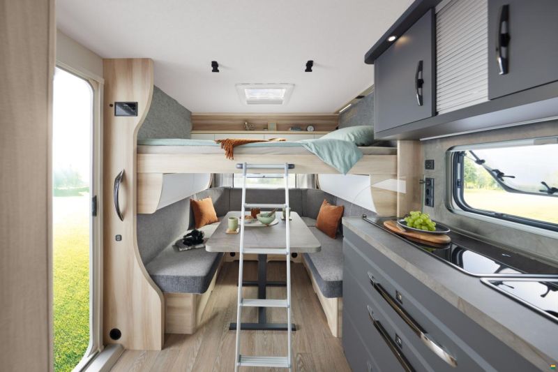 Kühlschrank – Rundsitzgruppe – Vorhänge – Warmwasserboiler
